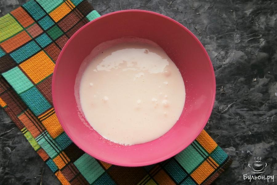 2. Миксером взбить все до плотной светлой массы. Взбивать нужно минуты 3-4 - до полного растворения сахарного песка.