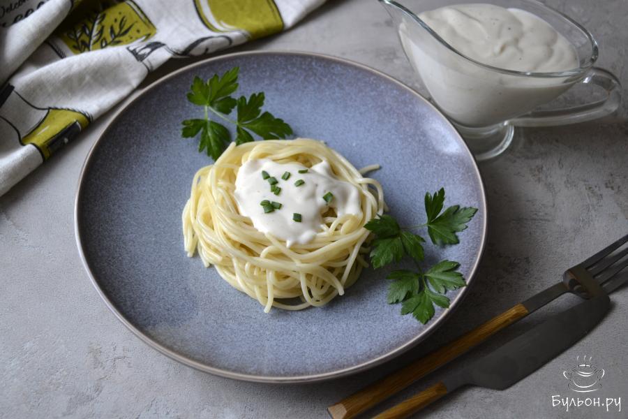 9. Сырный соус идеально подойдет для спагетти. По желанию, добавьте немного зеленого лука и свежей петрушки и приятного вам аппетита!