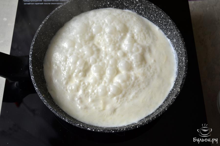 7. На среднем огне доведите соус до кипения и при постоянном помешивании проварите соус, чтобы сыр полностью расплавился.