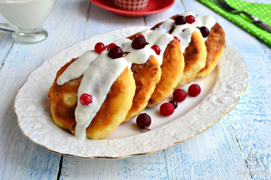 9. Подать сырники можно со сметаной, смешанной с сахаром, медом или джемом, а также со свежими ягодами в теплом виде. Сырники также вкусны и в холодном виде. Приятного аппетита.