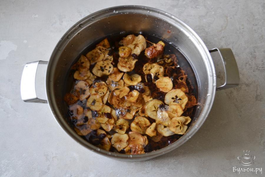 Компот из домашних сухофруктов - это замечательная замена магазинным напиткам, ведь вы полностью уверены в качестве готового продукта. Сухофрукты можно взять абсолютно любые, какие вам по вкусу. У меня домашние яблоки, груши и вишня. Можно дополнить изюмом или курагой. Количество сахара тоже добавляйте исходя из сладости сухофруктов, а также его можно заменить на мед, который добавить в уже охлажденный компот. Чтобы вкус компота был насыщенным, дайте ему немного настояться после снятия кастрюли с плиты.