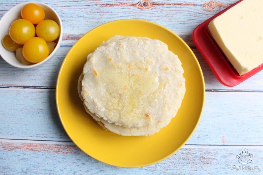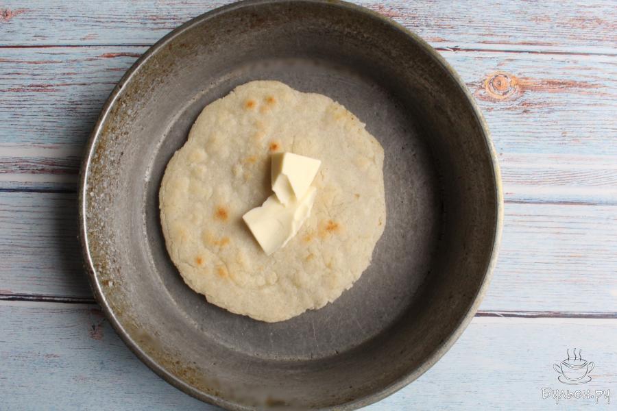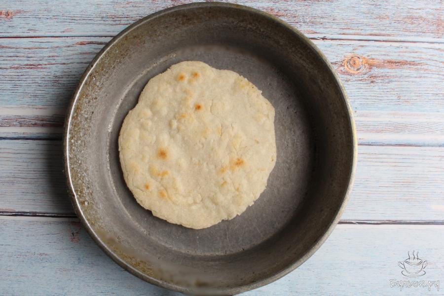 5. Раскатываем тесто в лепешки и обжариваем их на сухой сковороде. Если вы хотите очень тонкие лепешки, то их удобно раскатывать через пищевую пленку.