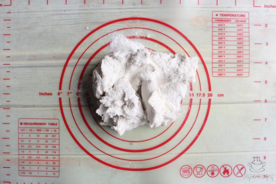 4. Вымешиваем тесто так, чтобы оно собралось в комок, если нужно добавляем немного муки. Разделим тесто на столько кусочков, сколько нужно лепешек.