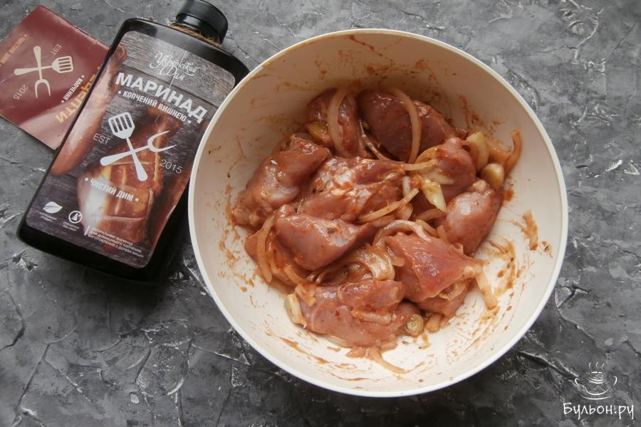 5. Если есть - добавить жидкий дым, еще раз хорошо мясо перемешать. Оставить его в прохладном месте часа на 3.