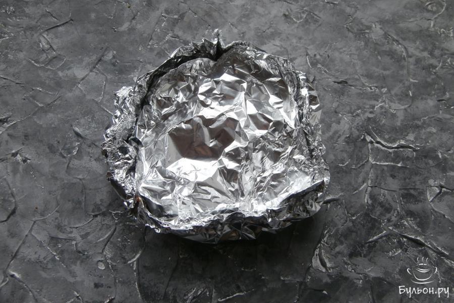 7. Закрыть все еще одним листом фольги и отправить свинину в разогретую до 200 град. духовку на 30 минут.