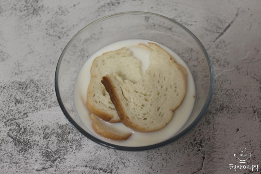 1. Так как вымачивание булки займет порядка 15-20 минут, первым делом стоит замочить именно булку в молоке. Можно замочить и в воде, но с молоком котлетки получаются нежнее.