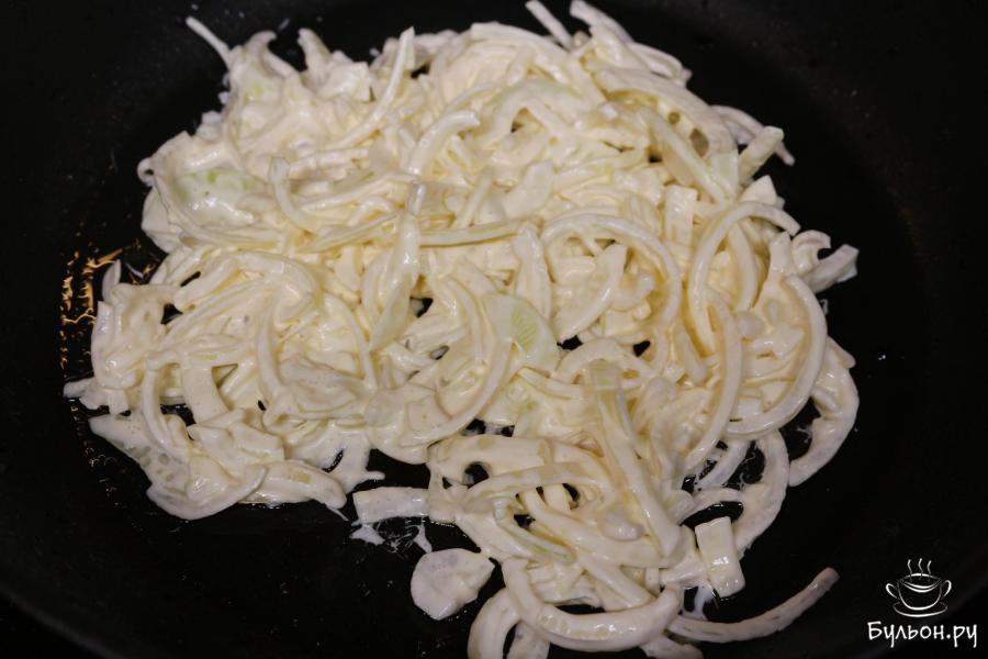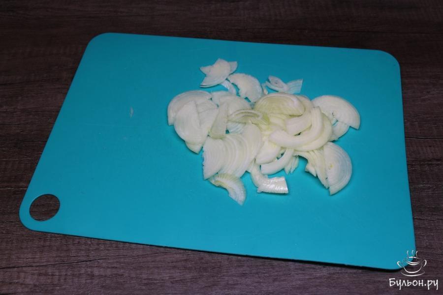 1. Важно выбрать для рецепта нужный лук, он не должен быть "злым". Очистим его от шелухи и режем тонкими полукольцами.