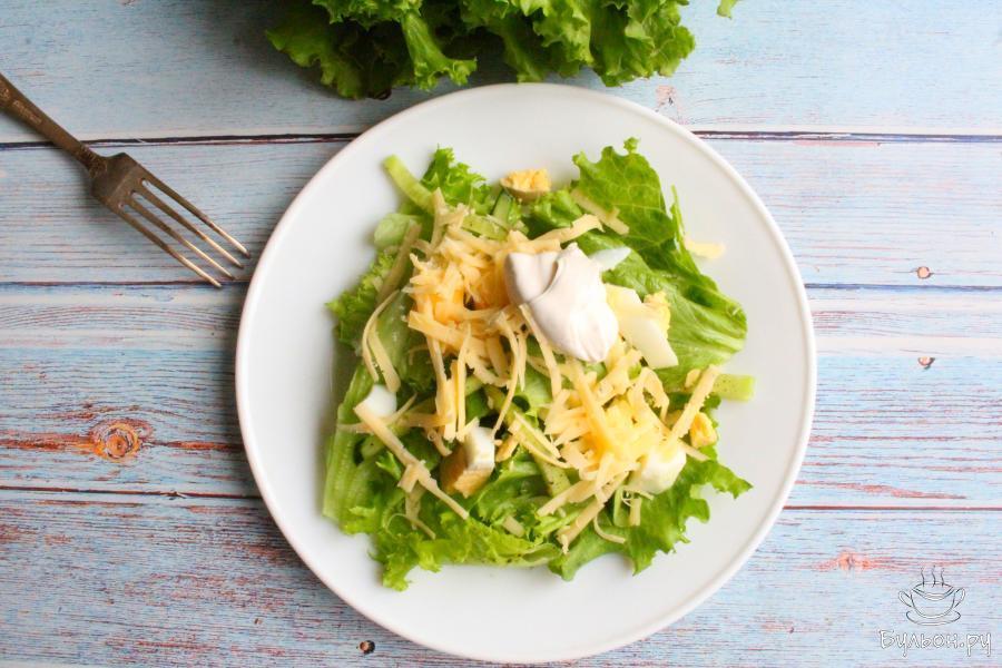 Зеленый салат с сыром и яйцом можно приготовить из любых любимых листьев салата или из ассорти салатных листьев. Салат получается легкий, сочный, хрустящий, свежий и очень вкусный. Готовится такой салат быстро и легко, его приготовление не займет много вашего времени, его практически не нужно перемешивать. Зеленый салат не только вкусный, но и красивый, на столе он смотрится очень аппетитно, ярко и заманчиво. Удобно, что салат готовится порционно, сразу по тарелочкам.