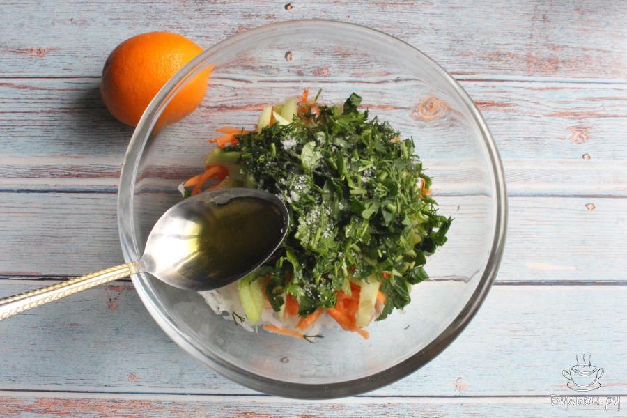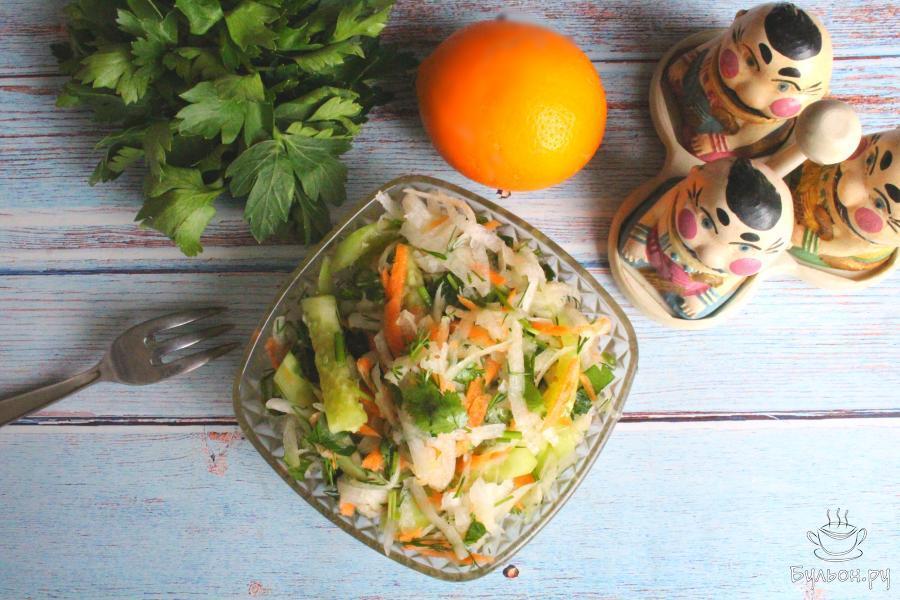 Этот полезный и витаминный салат отлично подходит для постного и вегетарианского меню. Салат готовится просто и легко, дополнить такой салат можно своими любимыми овощами и зеленью. Сочный овощной салат с дайконом получается легкий, ароматный, вкусный, нежный, он разнообразит повседневный стол. Также, этот алат хорошо подходит для разгрузочных дней, или вы просто хотите отдохнуть от салатов с майонезом.