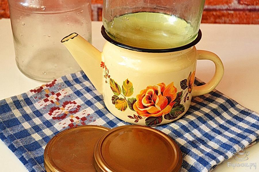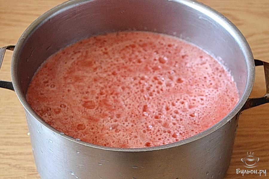5. Сок довести до кипения и прокипятить 5 минут. Горячим разлить в баночки, проследить, чтобы не попала пена. Закрутить крышками и подержать некоторое время в перевернутом виде.
