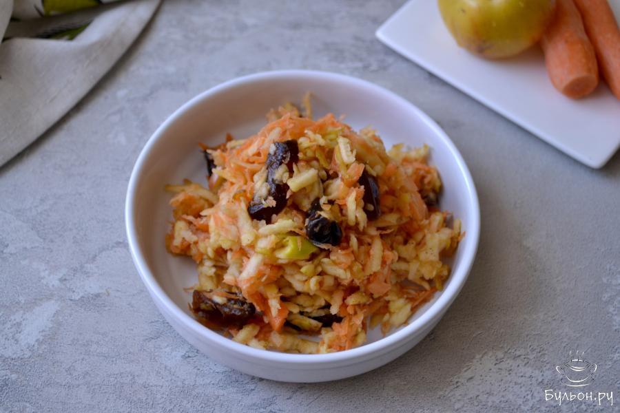 Весной хочется легких, свежих салатов. Предлагаю приготовить сладкий фруктово-овощной салат из яблок и моркови. Эти продукты хорошо сочетаются по вкусу. Дополнить салат можно изюмом, курагой, черносливом или финиками. Для придания пикантной нотки чуть-чуть присыпьте салат молотой корицей и для сладости можете добавить ложечку меда. Салат - сплошные витамины и клетчатка, что особенно важно и нужно весной. К тому же, такой салат хорошо разнообразит постный стол.