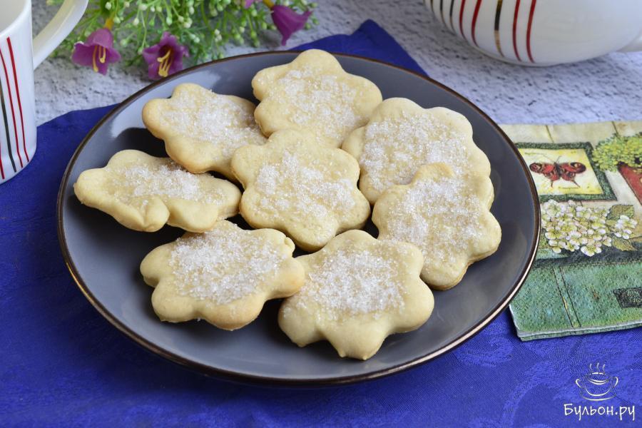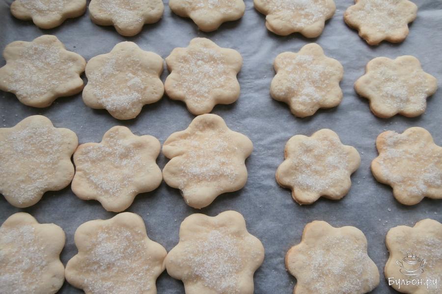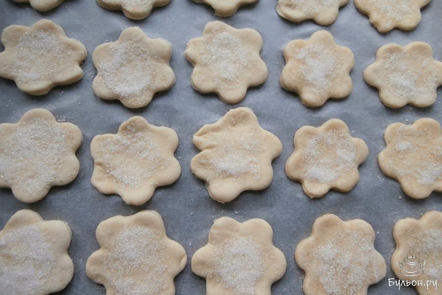 5. Печенье выложить на застеленный пергаментом противень и посыпать, немного вдавливая в тесто, смесью сахара и ванильного сахара.