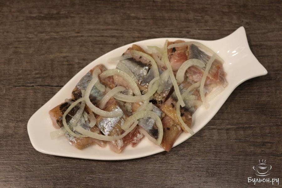 7. После этого промежутка времени рыба с луком полностью замаринована и готова к употреблению. Замаринованную сельдь с луком выложите на селедочницу или другой блюдо, сбрызните ее небольшим количеством растительного масла и подавайте к столу.