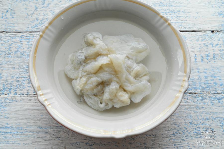 6. Свиные кишки замочить на 15 минут в подкисленной лимонным соком или уксусом воде, затем тщательно промыть под струей воды, надев каждую - на гусак крана.