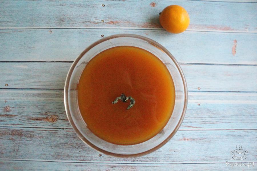 7. Добавляем по вкусу лимонный сок и пару листиков мяты. Если готовим зимний напиток, то мяту и лимон добавлять не обязательно. Снова доводим напиток до кипения. Затем убираем листики мяты.