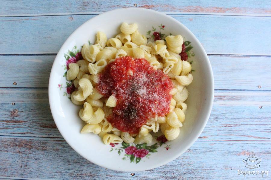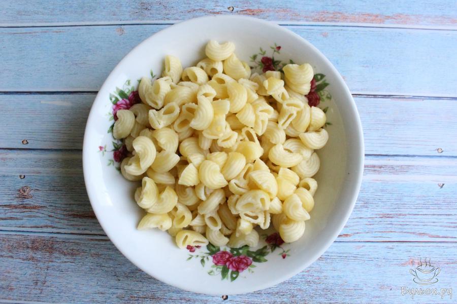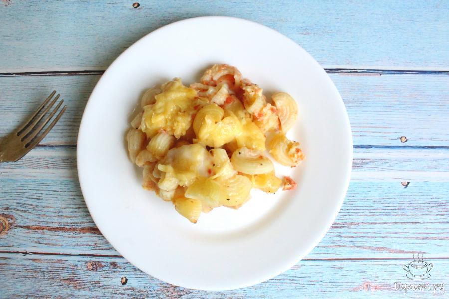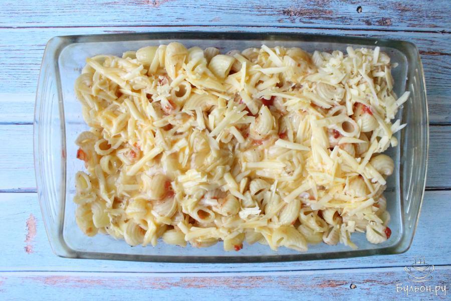 5. Выкладываем макароны в форму для запекания, смазанную растительным маслом, и заливаем яично-сырной смесью.