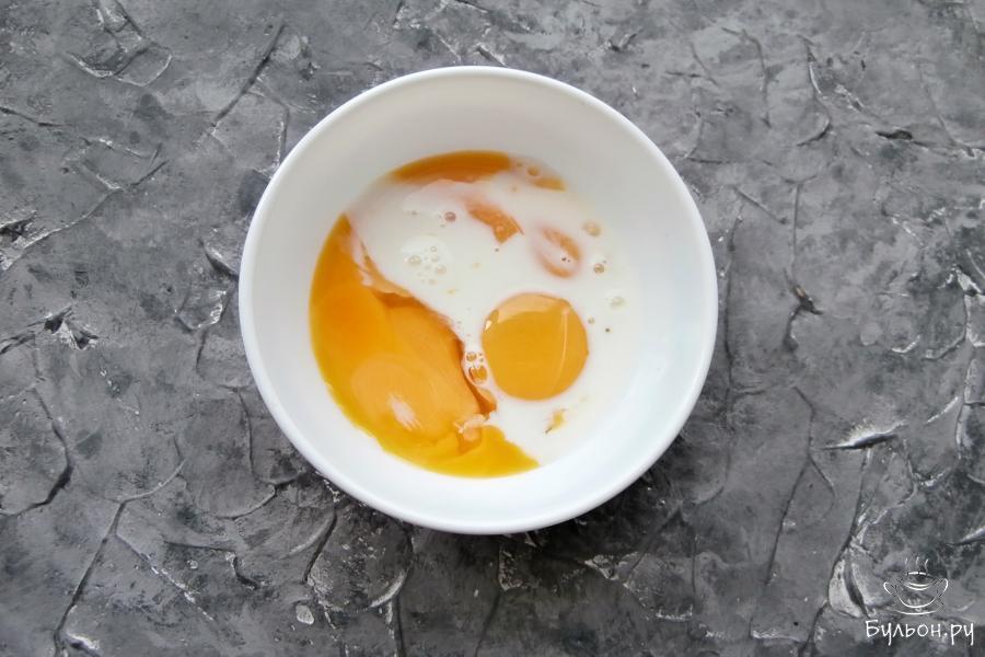 3. Разделить яйца на желтки и белки, к желткам добавить молоко и немножко соли, Тщательно расколотить все до однородности.