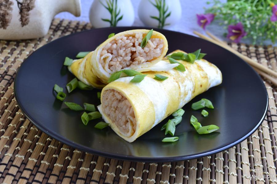Хочу предложить вам рецепт очень вкусного японского блюда, которое готовится просто и получается необычным и аппетитным. Японцы - люди творческие и даже, казалось бы из самых обычных продуктов придумали такой шикарный омлет. Подайте его к завтраку для своих родных и они будут приятно удивлены и благодарны. Рис для омлета подойдет практически любой, какой вы любите, а яйца лучше взять домашние, с ярким желтком. Необычно, вкусно, красиво и интересно, попробуйте.