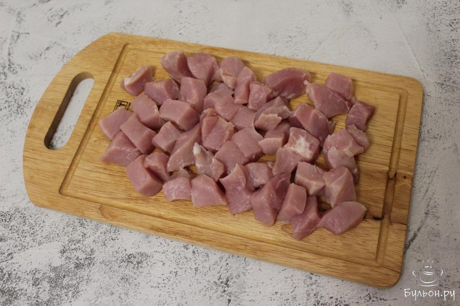 1. Возьмем кусочек нежирной свинины, у меня карбонад, промоем под водой, обсушим и нарежем достаточно крупными кусочками.