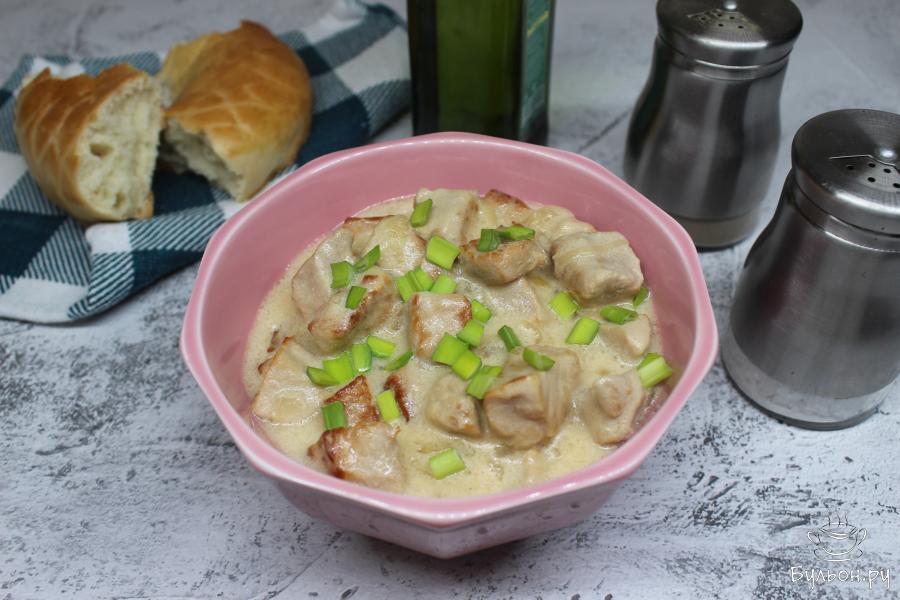 В нашей стране свинину потребляют очень хорошо. Во-первых, свиное мясо вкусное, а во-вторых, оно значительно дешевле мяса говядины или баранины. Многие наверняка готовили уже свинину в сливочно-сметанном соусе, но сегодня я хочу поделится рецептом свинины в сметанном соусе на крахмале. Крахмал присутствует в этом рецепте не случайно. Благодаря ему, сметана во время тушения не сворачивается, а сам сметанный соус загустевает.