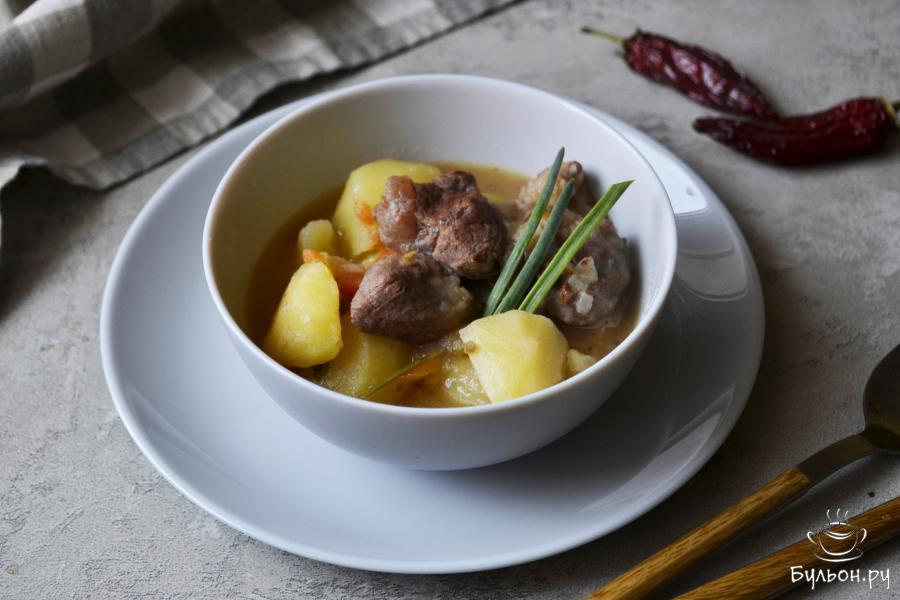 Жаркое из говядины и картофеля с морковью и луком - это вкуснейшее домашнее блюдо, которым можно накормить всю семью. Обычно, жаркое томят в керамических горшочках, но можно сделать упрощенный вариант - приготовить его в казане или кастрюле. Основные ингредиенты жаркого - говядина и картофель, дополнительные - лук и морковь, томат. Специи также можно добавлять по своему вкусу. В классическом варианте, мясо нужно недолго обжаривать на довольно сильном огне, я предпочитаю мясо тушить. Приступим!