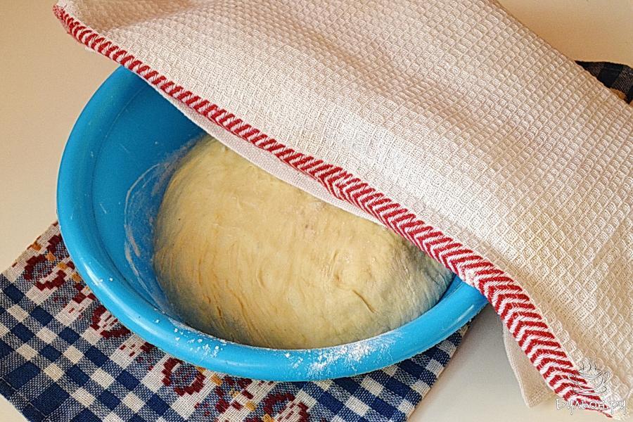 6. Тесто выложить в глубокую посуду, накрыть тканью и оставить для созревания. Тесто готово для дальнейшей разделки тогда, когда оно увеличится в объеме в 2-2,5 раза.