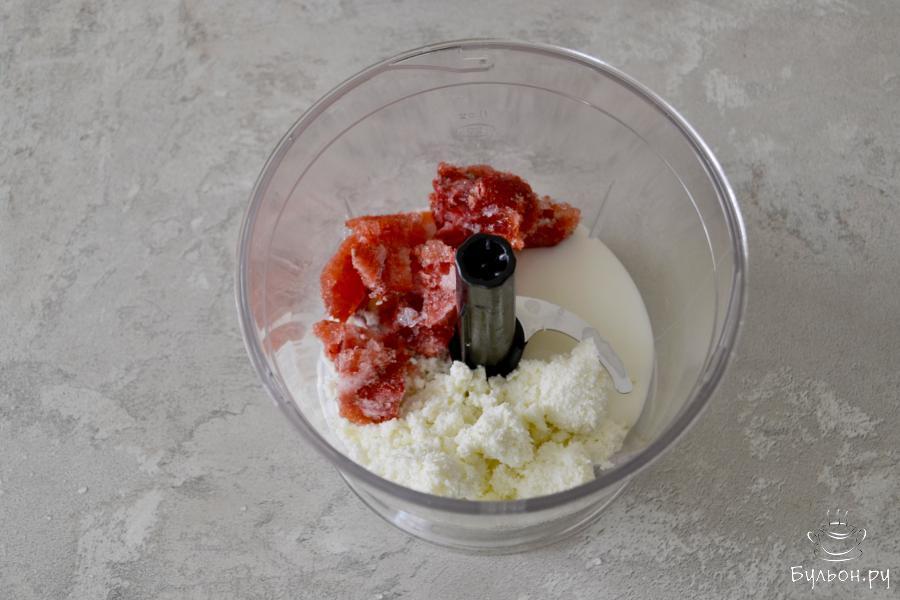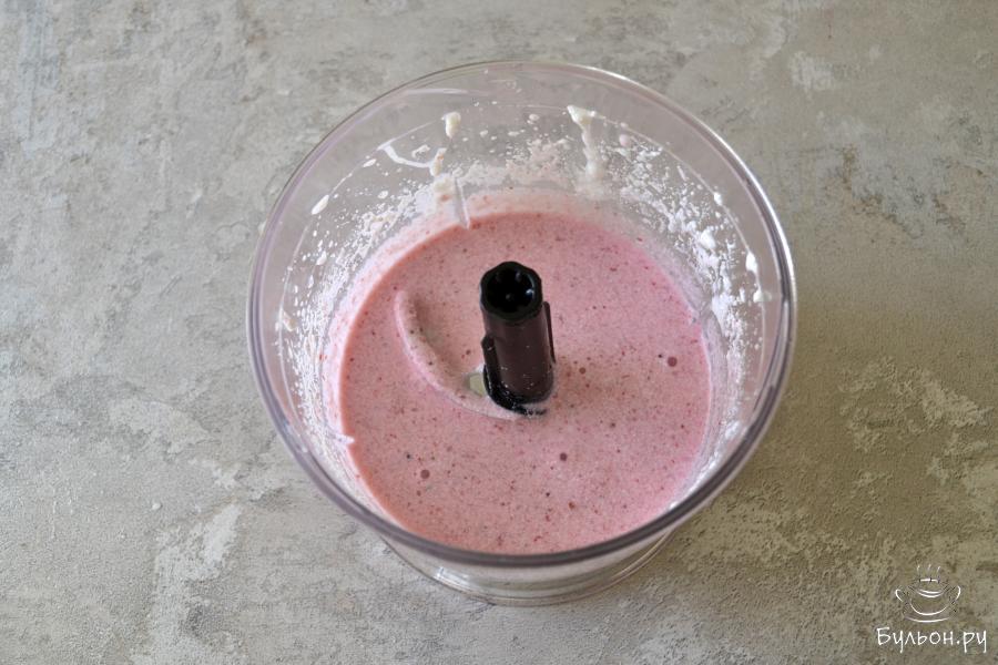 2. Добавьте ягоды. У меня замороженное клубничное пюре. Можно взять абсолютно любые ягоды без косточек, которые вам по вкусу.