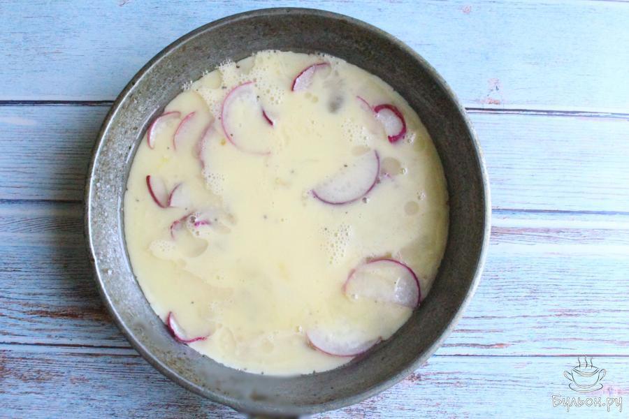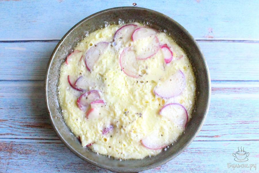 Если у вас есть под рукой несколько редисок, то можно приготовить из них отличный, необычный и пикантный завтрак - омлет с редиской на сковороде. Омлет получается нежный, вкусный, легкий, сочный и очень красивый. Готовится такой омлет проще простого и приготовление занимает считанные минуты, а это очень удобно, когда завтрак нужно сделать быстро. Если вы ни разу не пробовали омлет с редиской, самое время его приготовить, это весеннее блюдо понравится многим.