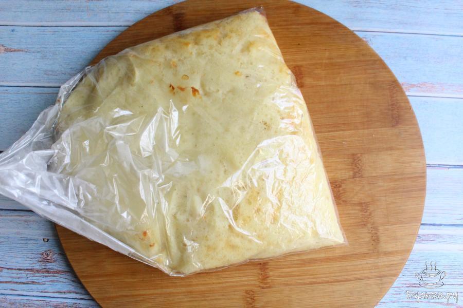 11. Духовку разогреваем до 180С. Выпекаем хлеб 20-25 минут. Этот хлеб получается светлый, без корочки. Через рукав видно, когда он будет готов.