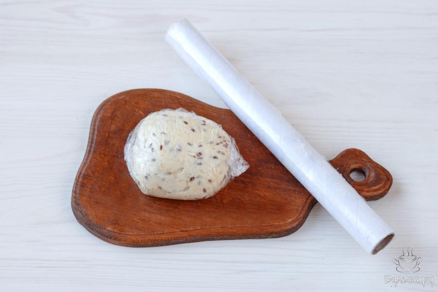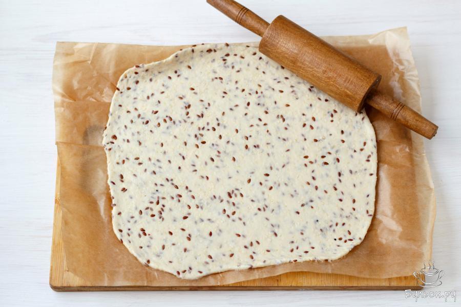 6. Раскатайте тесто до толщины примерно 3-5 миллиметров. Для того чтобы не приходилось подсыпать дополнительно муку, можно раскатывать тесто на листе бумаги для выпекания.