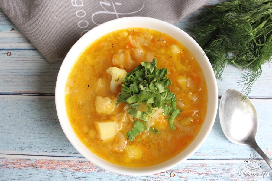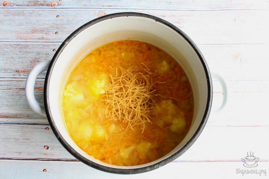 Суп с вермишелью и цветной капустой можно подать к постному или вегетарианскому столу. Такой суп отлично подходит для разгрузочных дней, или, если вы просто хотите съесть легкое первое блюдо. Суп готовится быстро, из доступных продуктов, которые найдутся на кухне. Суп получается нежный, вкусный, с легкой сладостью, которую дает цветная капуста. Попробуйте приготовить это простой и аппетитный суп, он понравится многим.