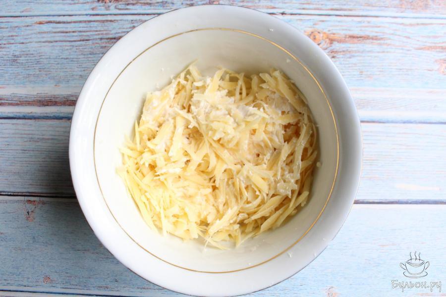 3. Сливки для приготовления берем жирные 30-33%. Добавим к сливкам сыр, перетертый через крупную терку.