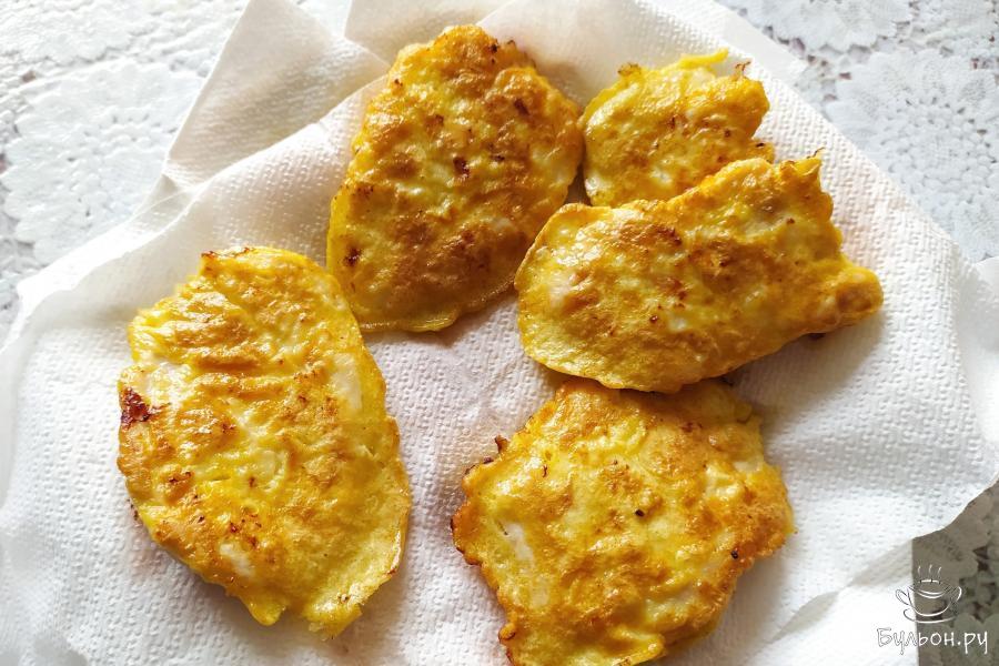 7. Готовые отбивные выложить на бумажные салфетки, чтоб убрать лишний жир. Куриные отбивные в чесночно-луковом кляре готовы к употреблению. Приятного аппетита!