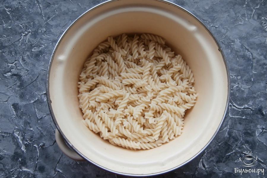 1. Макароны нужно отварить по инструкции на вашей упаковке. Откинуть макароны на дуршлаг и промыть проточной водой.