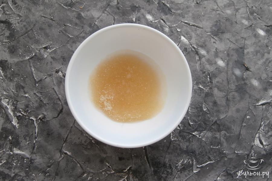 6. Желатин замочить на 5 минут в холодной воде, а затем растопить на водяной бане, не доводя до кипения.