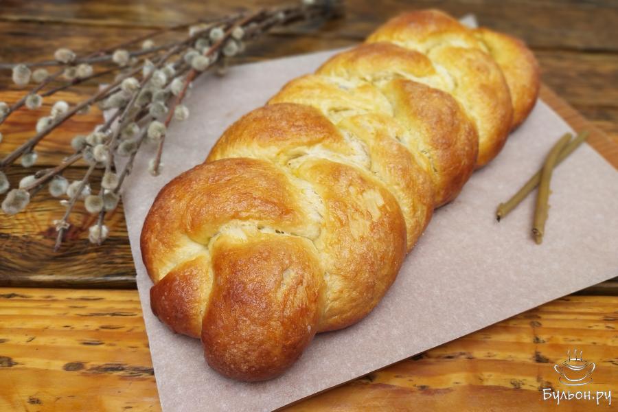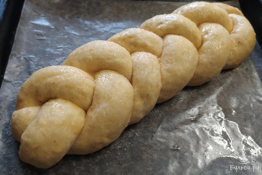14. Смазать оставшейся половиной яйца, посыпать сахаром. Выпекать в прогретой до 180 градусов духовке 35-40 минут, до золотистого цвета.