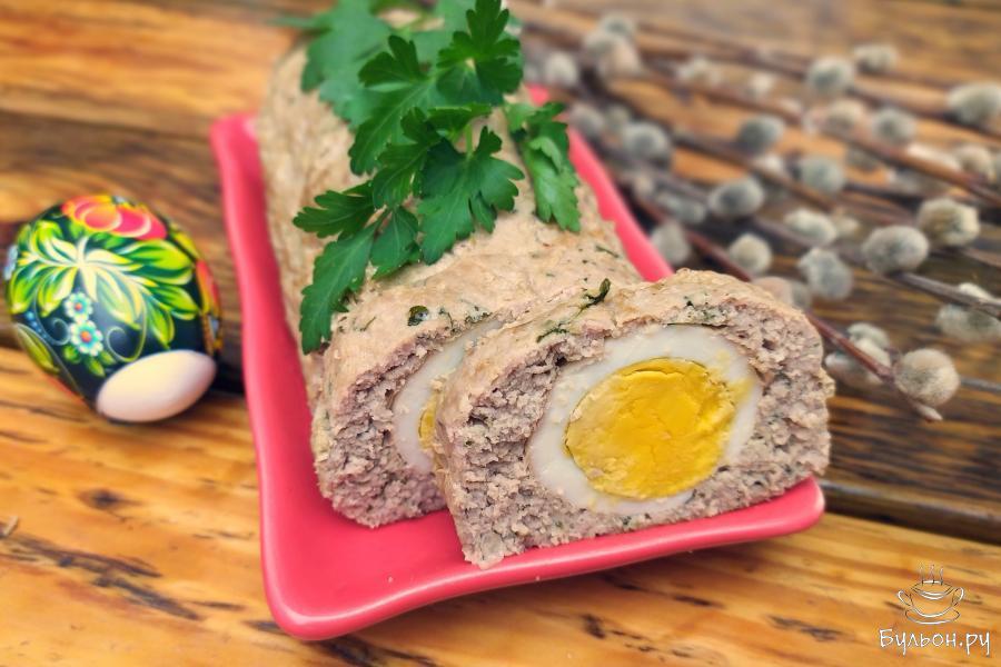 Митлоф - это мясной хлеб, испеченный в духовке. Блюдо простое и готовится несложно. К тому же, оно диетическое, так как готовится без масла и без обжарки. Сегодня хочу поделиться с вами праздничным рецептом пасхального митлофа с отварным яйцом. Благодаря яйцам, которые спрятаны внутри хлебца, блюдо выглядит нарядно и празднично в разрезе. Такой мясной хлеб займет почетное место на праздничном столе.