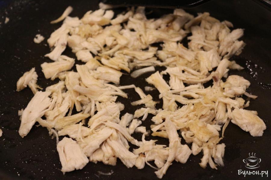 6. Курицу обжариваем на растительном масле в течение пары минут, для того, чтобы курица стала теплой.