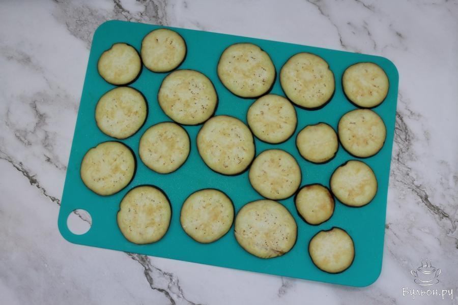 1. Баклажан моем и режем тонкими кружками, немного подсаливаем и оставляем на 10 минут. Это делается для того, чтобы баклажаны не горчили.