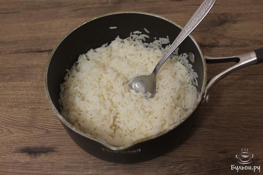 1. Чтобы не терять драгоценное время, первым делом надо промыть рис и отварить его в подсоленной воде, затем слегка остудить и промыть под водой. Я использовала длинозерный золотистый рис, вы можете использовать и круглозерный, но таких колючек у вас не получится.