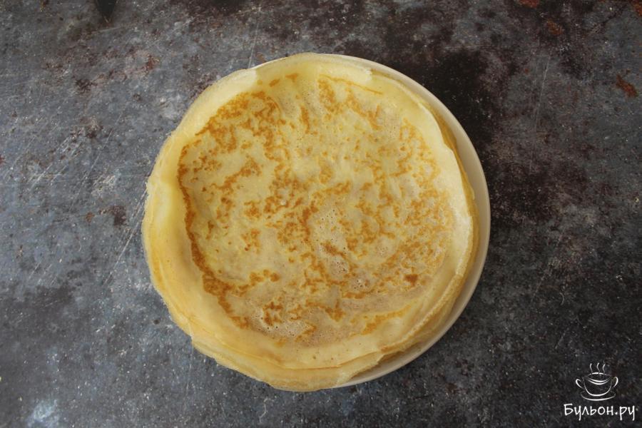 8. Так обжарим все блинчики и выложим их стопкой на одну тарелку. Получается 8 порций из расчета 2 блинчика на 1 человека.