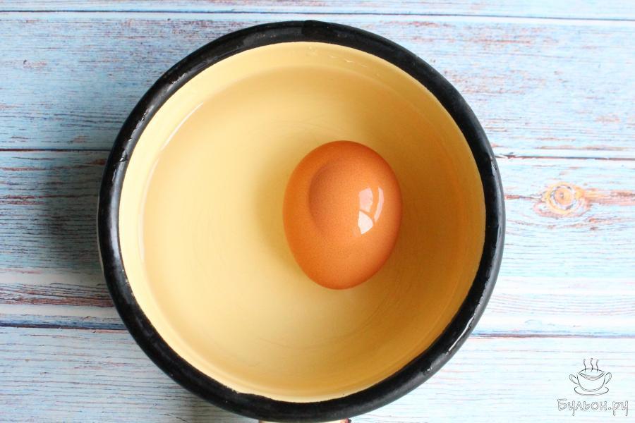 2. Пока сварим яйцо вкрутую. Варим яйцо 10 минут, после закипания воды. Затем воду сольем, яйцо остудим и почистим.