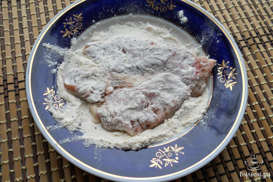 8. Поместить мясо в разогретое на сковороде растительное масло. Масла должно быть достаточно, чтобы шницели были в него погружены наполовину.