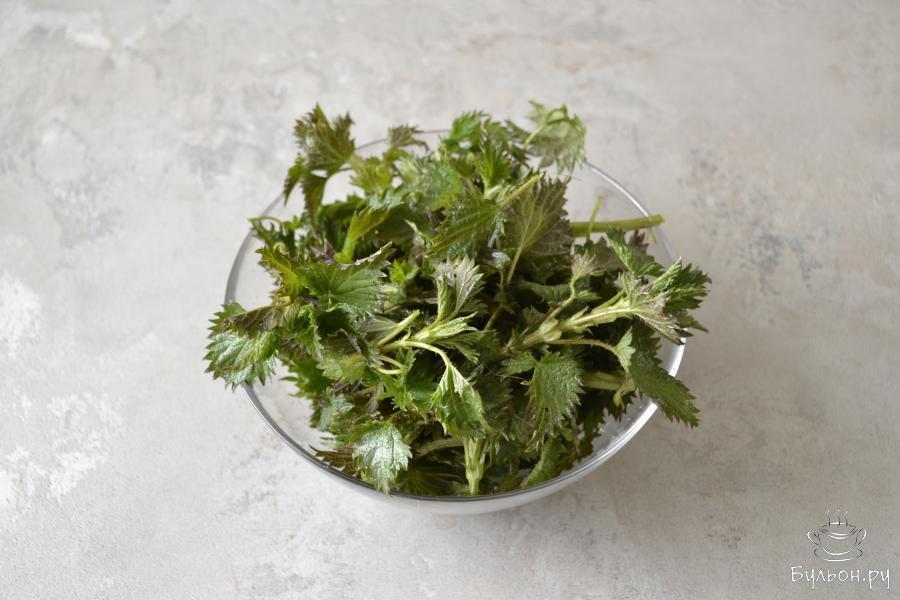 1. Молодую крапиву тщательно промойте, меняя воду несколько раз. Используйте только листья, стебли лучше не брать. Затем отряхните или обсушите от воды. Удобнее работать в резиновых перчатках.