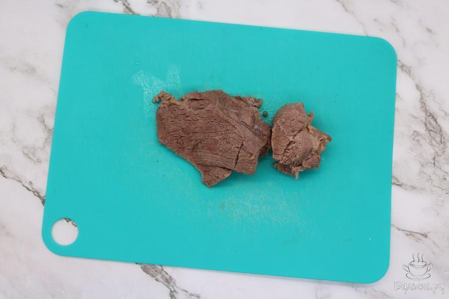 1. В начале сварим мясо. Для этого вымоем его, выложим в кастрюлю, зальем водой и поставим на огонь. После того, как вода закипела, снимем пенку, посолим, уменьшим огонь, закроем кастрюлю крышкой и будем варить мясо часа 2.