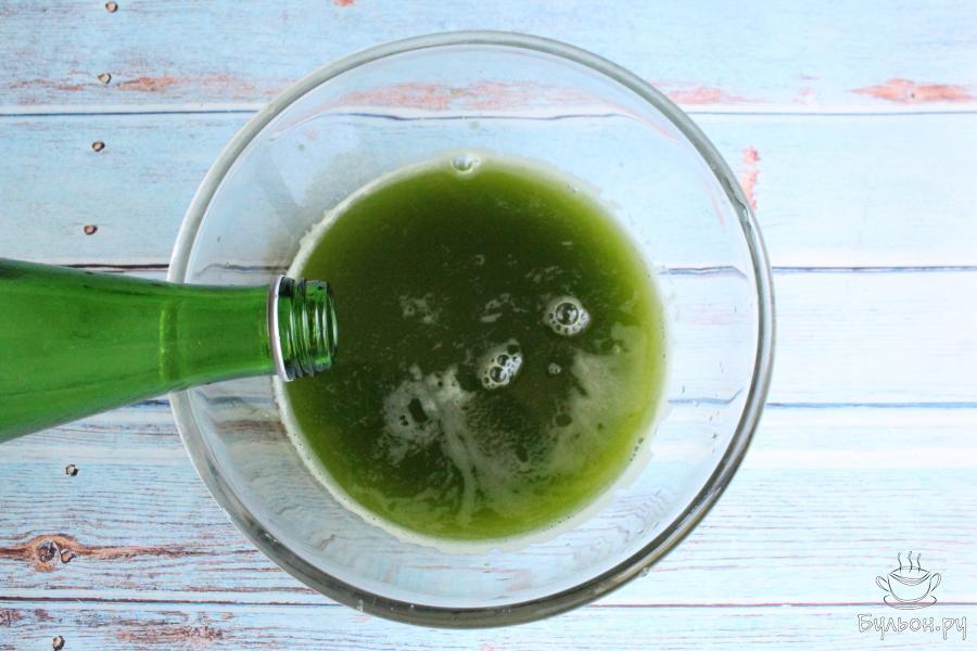 6. Затем, добавляем к щавелю имбирный сироп по вкусу. Начинаем добавлять 100 мл. и пробуем, если нужно, то добавляем 200 мл. или весь сироп. Если добавить весь сироп, то получается лимонад с заметной имбирной остринкой.