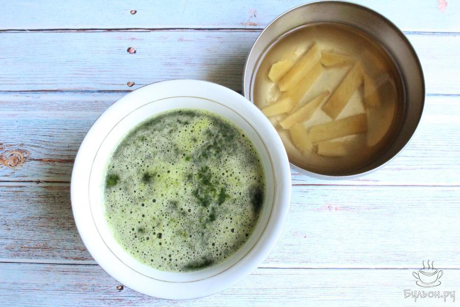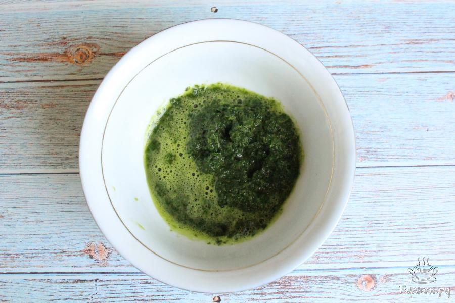 3. В это время щавель промоем, срежем у него стебли, а листья перекрутим через мясорубку или измельчим блендером.