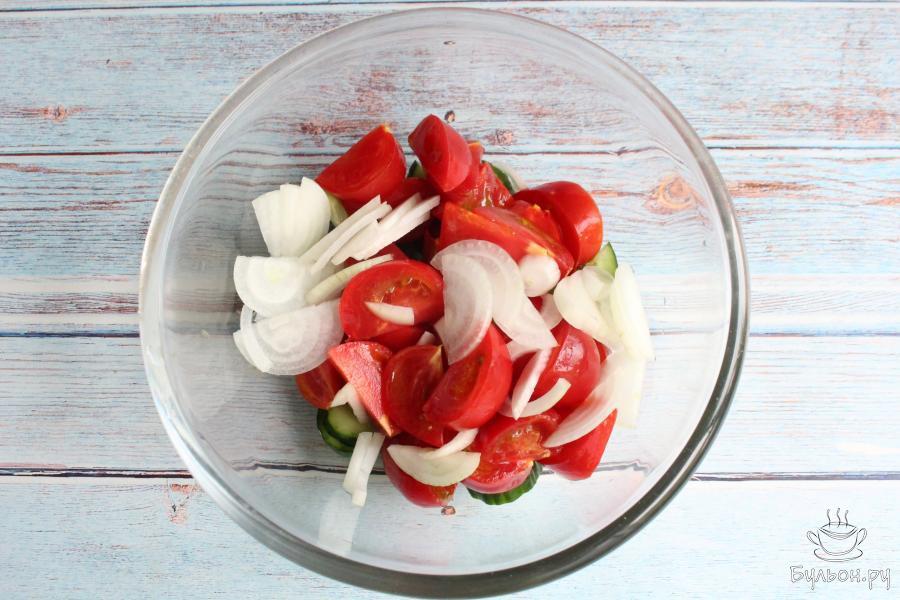 3. Лук почистим, промоем и нашинкуем тонкими полукольцами. Если лук очень острый, то можно промыть его под проточной водой.