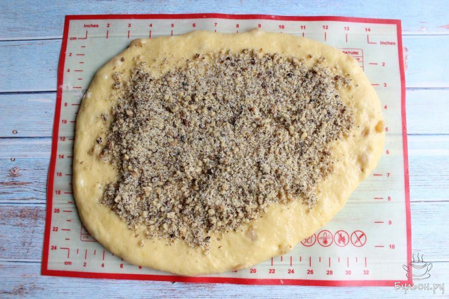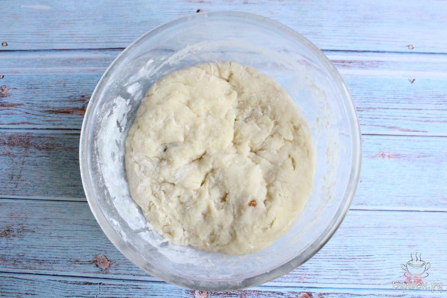 9. Когда тесто подойдет, обомнем его, вымесим. Раскатаем из теста прямоугольный пласт толщиной 1 см.
