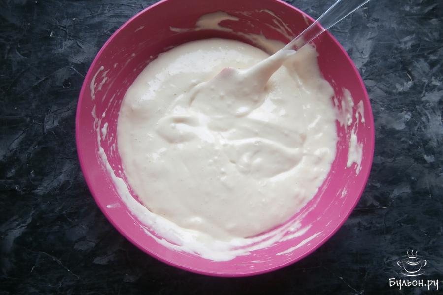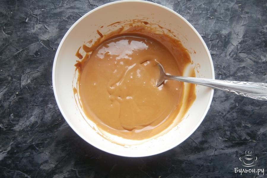 11. Взбить миксером вареную сгущенку со сметаной и размягченным сливочным маслом. В конце добавить чуточку коньяка (по желанию).